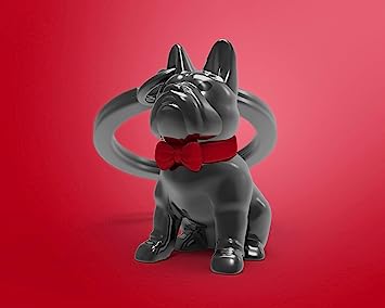 METALMORPHOSE – Porte-clés Bouledogue noir avec nœud papillon rouge – MTM253-02